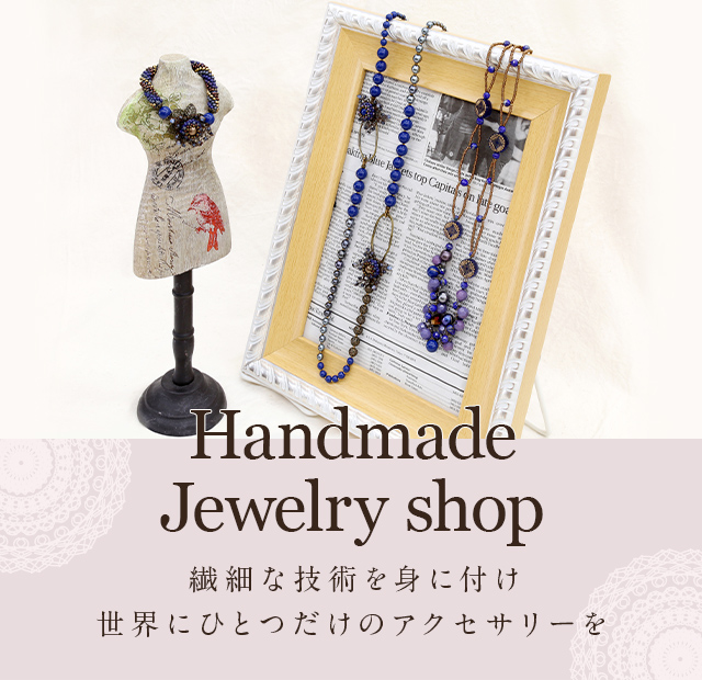 これから手作りアクセサリーを始めたい人、スキルアップをお考えの方に向けてビーズやジュエリーを使ったアクセサリー作りをお教えしています。
